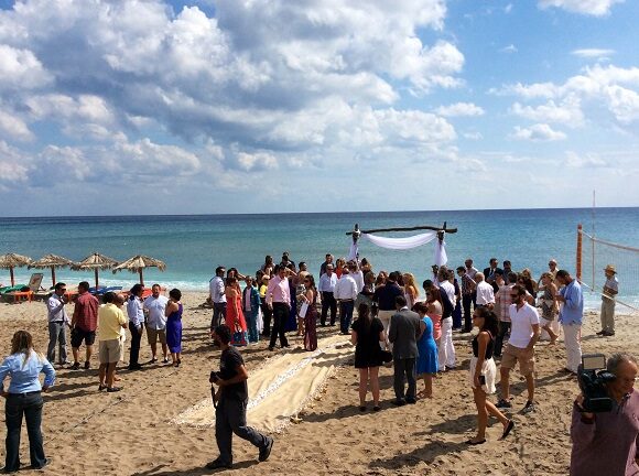 Στην πανέμορφη και ήσυχη παραλία της Αγίας Κυριακής, κάτω απο τα …παιχνιδίσματα του ήλιου με τα σύννεφα, που έφεραν ψιχάλες, ενώθηκαν με τα δεσμά του γάμου, το μεσημέρι του Σαββάτου, ο Ματθίας Κάτρης και η Σοφία Τσίμαρη. Στο νεαρό ζευγάρι (η μητέρα του γαμπρού είναι η