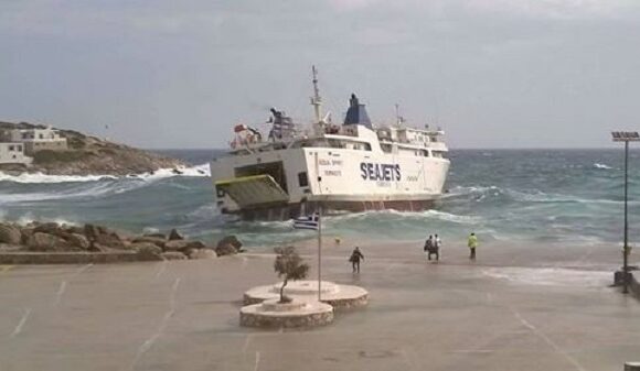 Η φουρτουνιασμένη θάλασσα δεν στάθηκε εμπόδιο για τον καπετάνιο, που κατάφερε να δέσει με ασφάλεια το Aqua Spirit παρά τα μεγάλα κύματα. Οι νότιοι άνεμοι στη Σίκινο εμποδίζουν την προσέγγιση των πλοίων στο λιμάνι του νησιού και ο καπετάνιος αναγκάζεται να δώσει μάχη με τα Περισσότερα