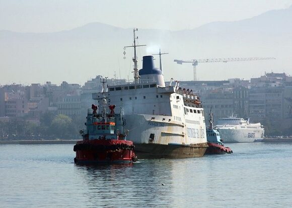 Το τελευταίο του ταξίδι κάνει το οχηματαγωγό πλοίο «Αγιος Γεώργιος», το οποίο βρισκόταν ημιβυθισμένο μέσα στο λιμάνι του Πειραιά. Το πλοίο αναχώρησε με προορισμό διαλυτήριο στην Τουρκία, με τη βοήθεια ρυμουλκού. Η διαδικασία ξεκίνησε στις 08:00 το πρωί της Τρίτης στο σημείο Περισσότερα