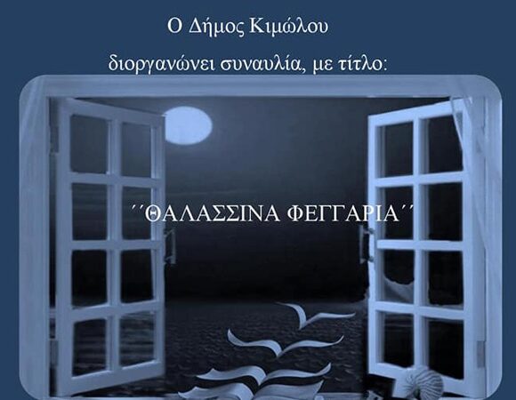 Στο πλαίσιο των καλοκαιρινών εκδηλώσεων ,ο Δήμος Κιμώλου διοργανώνει όπως κάθε χρόνο συναυλία “Θαλασσινά Φεγγάρια” την Παρασκευή 16 Αυγούστου στον προαύλιο χώρο του δημοτικού σχολείου στις 21.00. Παίρνουν μέρος , τραγούδι Όλγα Καμηλάρη, Γιώργος Σπαντίδης και Περισσότερα
