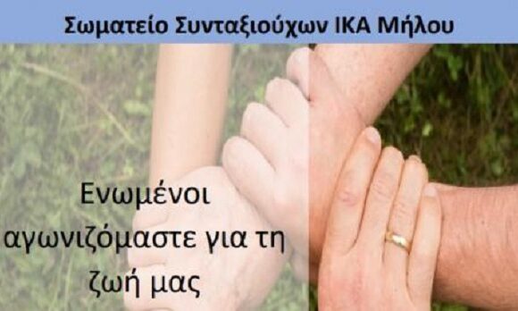 Το Σωματείο Συνταξιούχων ΙΚΑ Μήλου αισθάνεται την ανάγκη να αναφερθεί δημόσια, απευθυνόμενο και στους αρμόδιους φορείς, στην κατάσταση που επικρατεί στο Κέντρο Υγείας Μήλου. Εκφράζοντας τους συνταξιούχους της Μήλου, το σωματείο μας είναι υποχρεωμένο να υπερασπίσει το