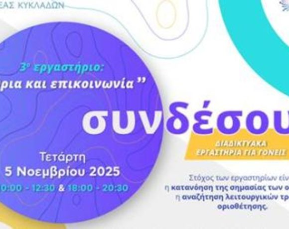 Την Τετάρτη 5 Νοεμβρίου θα πραγματοποιηθεί ακόμη ένα εργαστήριο για γονείς στα πλαίσια της θεματικής για τα όρια με θέμα: «Όρια και Επικοινωνία». Το εργαστήριο είναι το τρίτο και τελευταίο από την σειρά των αυτοτελών εργαστηρίων για γονείς και μπορεί να το παρακολουθήσει Περισσότερα