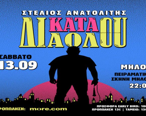 Η Πειραματική Σκηνή Μήλου διοργανώνει διήμερο stand up comedy 12 & 13 Σεπτέμβρη στις 22.00 στο Πολιτιστικό Κέντρο Αδάμαντα. Στέλιος Ανατολίτης, Δήμητρα Νικητέα & Μελίνα Κόλλια έχουν σαλπάρει (… προ πολλού) κι ετοιμάζουν απόβαση στη Μήλο για ένα διήμερο γέλιου Περισσότερα