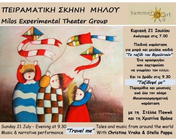 Μουσική, τραγούδια, χοροί αυθεντικοί των Κυκλάδων στο Summer Art 19 της Πειραματικής σκηνής Μήλου, κι απόψε Κυριακή 25/8 στο Πολιτιστικό Κέντρο Αδάμαντα στις 9.30 το βράδυ.Μια Μηλέικη παραγωγή με σεβασμό στην παράδοση. Μια υπέροχη ατμόσφαιρα. Απολαύστε την. Περισσότερα