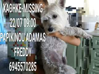 Χάθηκε στον Αδάμαντα περιοχή Παπικινού την Κυριακή το πρωί ο μικρός “Freddy” . Όποιος γνωρίζει κάτι να επικοινωνήσει στο τηλέφωνο 6945570286