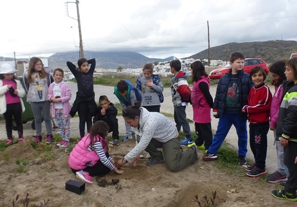 Με πρωτοβουλία της Κοινότητας Αδάμαντα η Δ΄τάξη του σχολείου Αδάμαντα μαζί με τον δασκαλό τους κ. Κώστα Συμεωνίδη πραγματοποίησαν δενδροφύτευση πάνω από το νεκροταφείο.