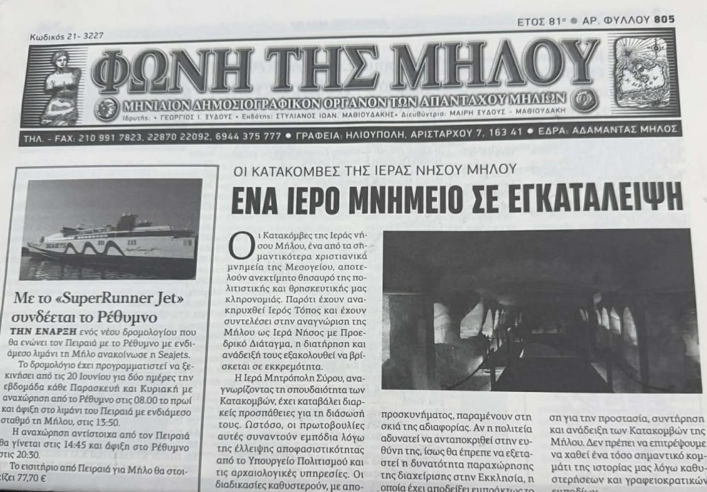 Ενημέρωση με άποψη έγκυρα και έγκαιρα. Καθημερινά ειδήσεις, αποκαλυπτικά ρεπορτάζ για Μήλο, Κίμωλο και τα νησιά των Κυκλάδων