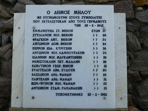 Ο δήμαρχος Μήλου Εμμανουήλ Μικέλης, τα μέλη του δημοτικού Συμβούλιου Μήλου , σας προσκαλούν στις εκδηλώσεις Τιμής Μνήμης