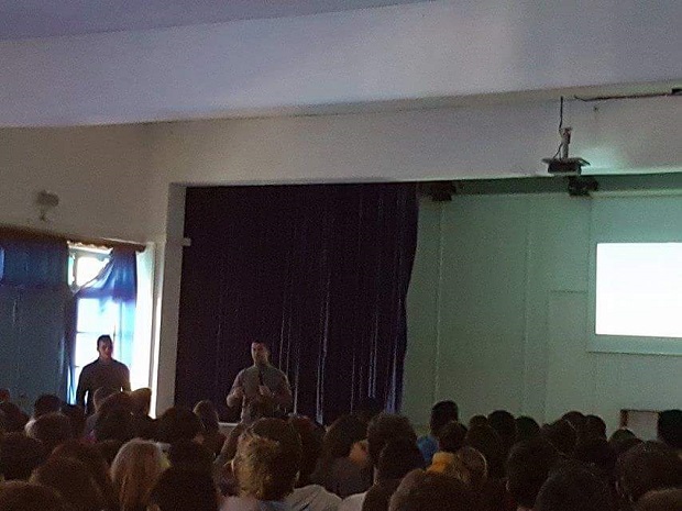 Οι αξιωματικοί στην κατάμεστη αίθουσα, παρουσίασαν μπροστά στο σύνολο των μαθητών και των καθηγητών των Σχολείων, με χρήση πολυμέσων, τρία στοχευμένα θέματα σχετικά με την οδηγική συμπεριφορά και ασφάλεια: την χρήση προστατευτικού κράνους, τη χρήση ζώνης ασφαλείας και την κατανάλωση αλκοόλ από οδηγούς οχημάτων.