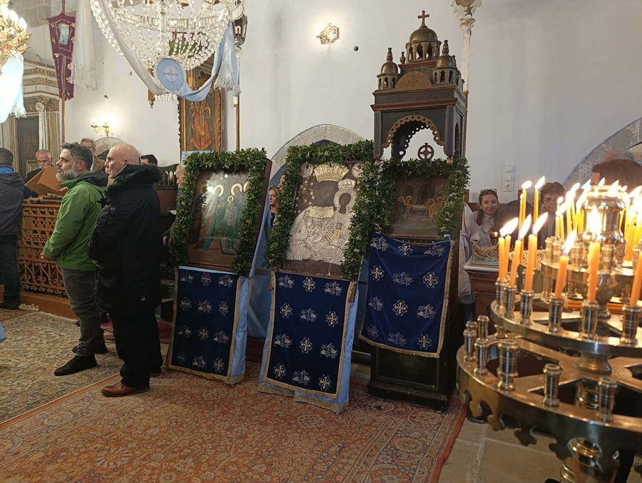 Με την προσέλευση πιστών παρά τις άσχημες καιρικές συνθήκες , τελέστηκε εσπερινός σήμερα το απόγευμα στη Παναγία Θαλασσίτρα (Υπαπαντή του Χριστού) στο Κάστρο της Πλάκας.