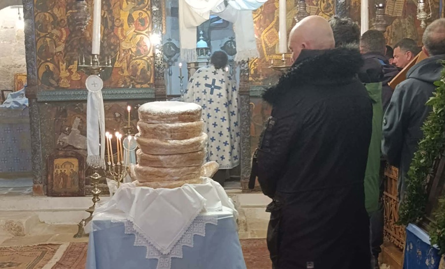 Ο παπα Χαράλαμπος Σαρακηνός ευλόγησε τους άρτους που πρόσφεραν οι πιστοί.