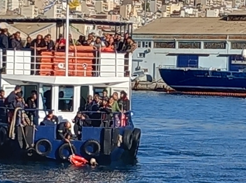 Την γυναίκα που έπεσε στη θάλασσα ανάμεσα στο Πέραμα και τη Σαλαμίνα την διέσωσε ένα καραβάκι που περνούσε από το σημείο και την μετέφερε και πάλι στο φέρι μποτ.