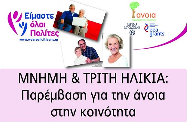 Την Παρασκευή 19/12 και  ώρα 18:00 στην αίθουσα του δημοτικού συμβουλίου θα πραγματοποιηθεί ημερίδα με θέμα “Μνήμη και τρίτη ηλικία”