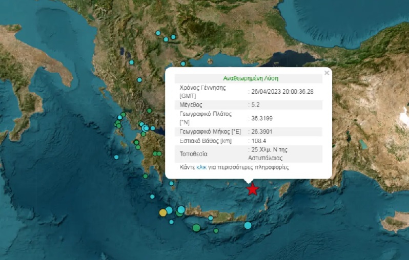 Σεισμός 5,2 Ρίχτερ σημειώθηκε στα ανοιχτά της Αστυπάλαιας.