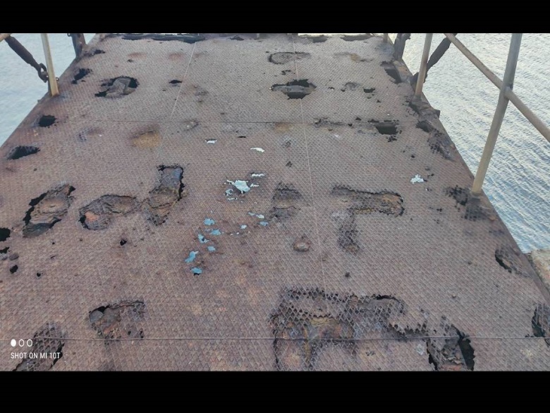Στο σημείο φόρτωσης του συγκεκριμένου μόλου, υπάρχει η παλιά σιδηροκατασκευή, η οποία είναι πλέον επικίνδυνη, καθώς δεν υπάρχει ούτε ένα σήμα, ή έστω μια ένδειξη που να προειδοποιεί το κοινό να μην πλησιάζει λόγω της επικινδυνότητας που υπάρχει και τον κίνδυνο να δημιουργηθεί σοβαρό ατύχημα.