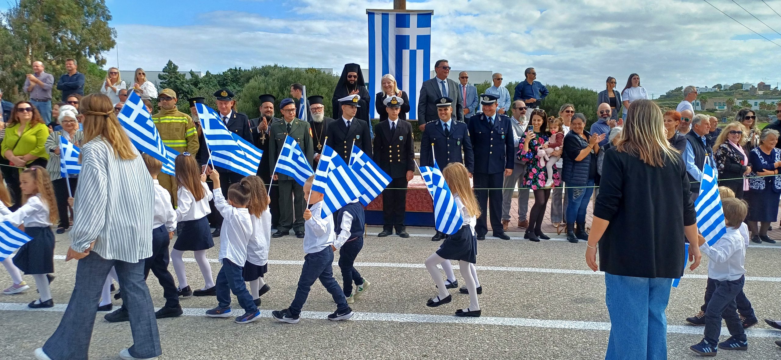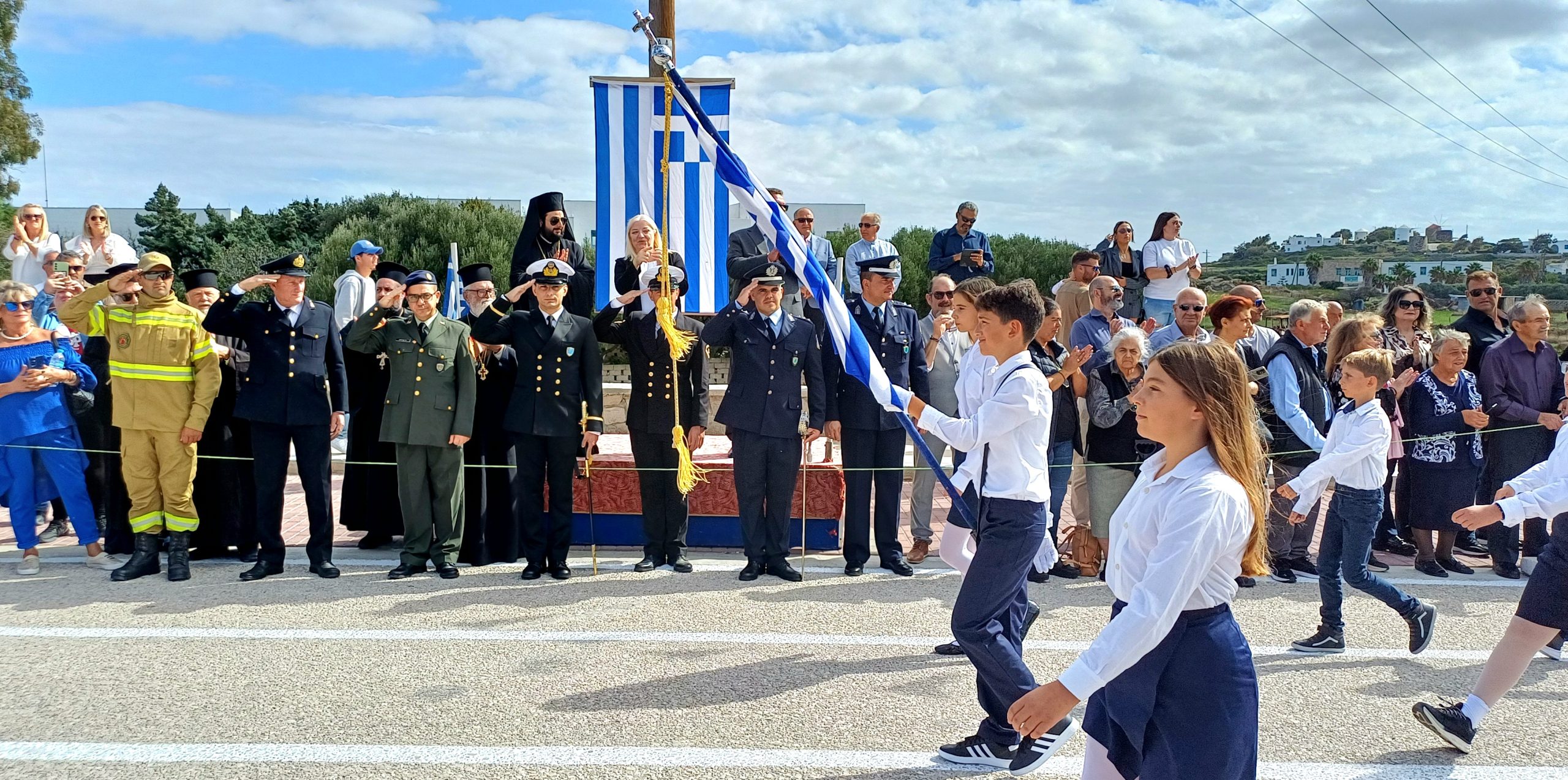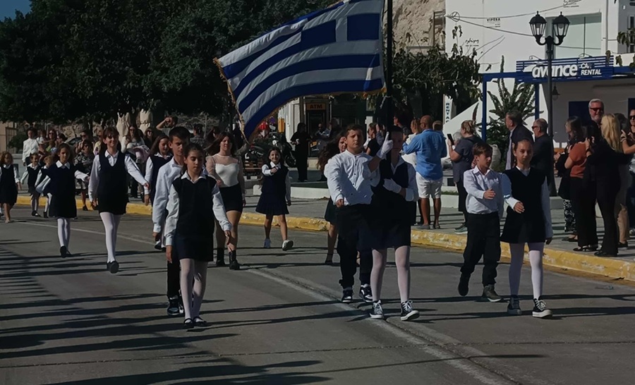 Έχοντας σύμμαχο τον καλό καιρό, πλήθος κόσμου παρακολούθησε και χειροκρότησε τους νέους του νησιού, που με μεγάλη περηφάνεια παρήλασαν και τίμησαν τους νεκρούς μας υπέρ της πατρίδας.