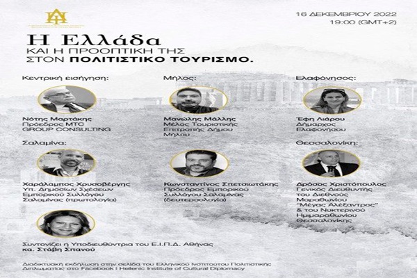 Το πολιτιστικό αποτύπωμα της Ελαφονήσου, της Μήλου και της Σαλαμίνας καθώς και οι αθλητικές διοργανώσεις του Μαραθωνίου “Μέγας Αλέξανδρος” και του Νυκτερινού Ημιμαραθωνίου Θεσσαλονίκης παρουσιάστηκαν σε διαδικτυακή εκδήλωση που οργάνωσε την περασμένη Παρασκευή το Ελληνικό Ινστιτούτο Πολιτιστικής Διπλωματίας σε συνεργασία με την MTC GROUP, στο πλαίσιο των κοινών τους δράσεων.