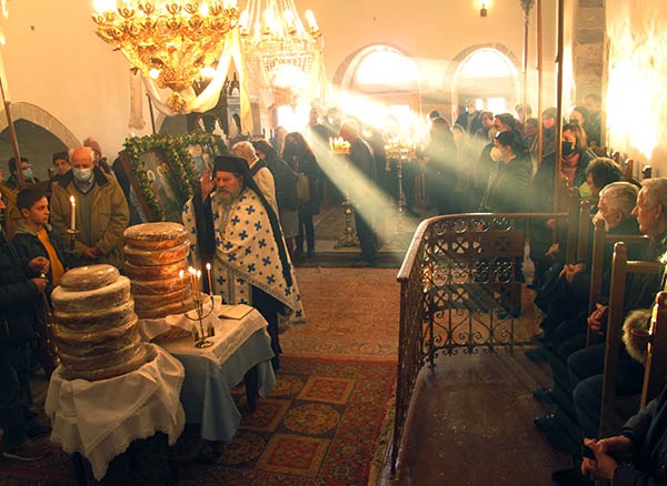 Μέσα σε πλήρη κατάνυξη ο παπα Χαράλαμπος τέλεσε τη λειτουργία του εσπερινού και ευλόγησε τους άρτους που πρόσφεραν οι πιστοί.