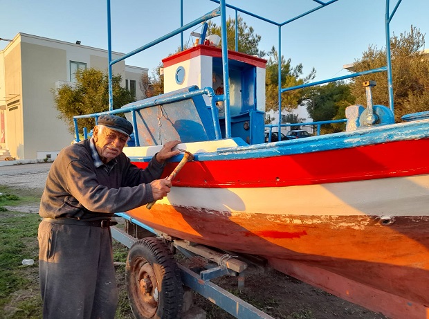 Ο συμπολίτης μας Μανώλης Αιβαλιώτης περιποιείται το καΐκι του στον Αδάμαντα που έβγαλε πριν λίγες ημέρες στη στεριά .Όπως λέει ο ίδιος ,τώρα είναι πια καιρός για να γίνουν οι καΐκοδουλειές της στεριάς !.