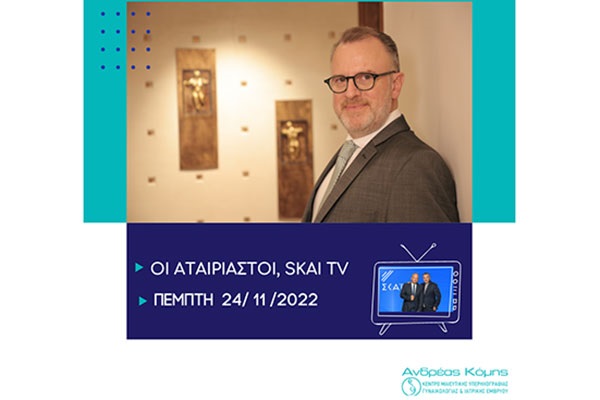 Ο Μαιευτήρας – Γυναικολόγος Ανδρέας Κόμης την Πέμπτη 24 Νοεμβρίου θα είναι φιλοξενούμενος στην εκπομπή “Οι Αταίριαστοι” (Skai Tv) 13.00-14.00 και θα μιλήσει για την αμνιοπαρακέντηση και τη λήψη τροφοβλάστης, δυο σημαντικές επεμβατικές εξετάσεις του προγεννητικού ελέγχου .