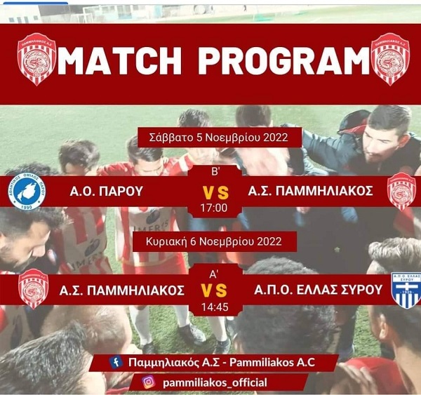 Το πρόγραμμα αγώνων του Παμμηλιακού το Σαββατοκύριακο.