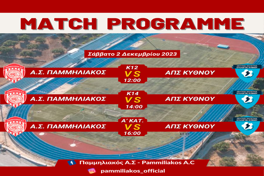 Στις 12:00 η ομάδα Κ12 του Παμμηλιακού θα αγωνιστεί απέναντι στον ΑΠΣ Κύθνου.