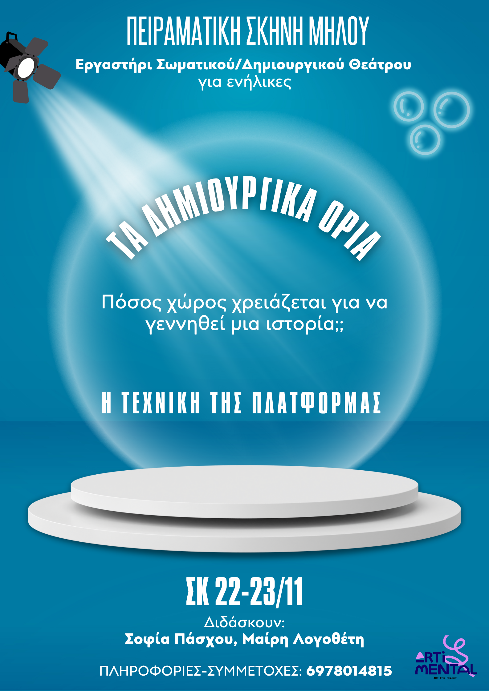Πειραματική Σκηνή Μήλου -Εργαστήρι Σωματικού Δημιουργικού θεάτρου για ενήλικες γι αυτό το Σαββατοκύριακο 22-23/11