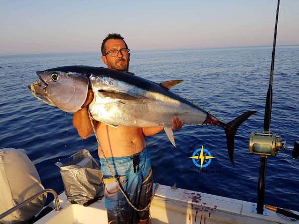 Ανάμεσα στη Σίφνο και στη Φολέγανδρο ο Γιώργος Γεωργούλης (Μαγγανάς) ψάρεψε από την βάρκα του με καλάμι τούνα 40 κιλών !