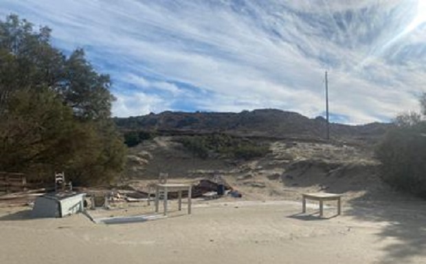 Πεταμένα τραπέζια , καρέκλες, ένα ψυγείο και άλλα αντικείμενα θαμμένα στην άμμο από το καλοκαίρι που μας πέρασε, παραμένουν στην παραλία του Μύτακα !