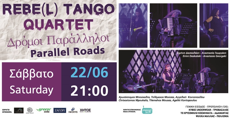Στο πλαίσιο της συναυλίας μας «Δρόμοι Παράλληλοι», το tango και το ρεμπέτικο παρουσιάζονται, πρωτίστως ως περιθωριακές μουσικές που κατά καιρούς άνθισαν στην παρανομία ή λογοκρίθηκαν, μουσικές που εξέφρασαν το λαϊκό γίγνεσθαι μιας δύσκολης καθημερινότητας των μεταναστών και προσφύγων της εποχής. Αυτό το πάντρεμα των δύο ειδών θα παρουσιαστεί στους θεατές από καλλιτέχνες που θα δοκιμάσουν και διασκευές ρεμπέτικων κομματιών σε tango ρυθμούς.