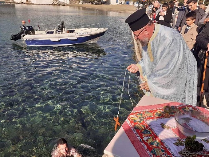 Από την τελετή του εορτασμού των Θεοφανείων στο Φάρο και στον Πλατύ γιαλό της Σίφνου.