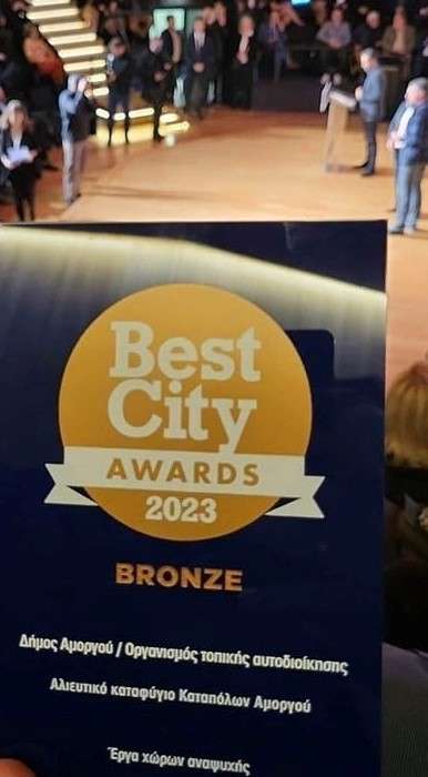 Σε μια τελετή –γιορτή για την Τοπική Αυτοδιοίκηση που πραγματοποιήθηκε στo Αμφιθέατρο «Μιλτιάδης Έβερτ» στην Τεχνόπολη Δήμου Αθηναίων, η Αμοργός τιμήθηκε με το Bronze βραβείο στην κατηγορία «Έργα χώρων αναψυχής» για το Αλιευτικό Καταφύγιο Καταπόλων.