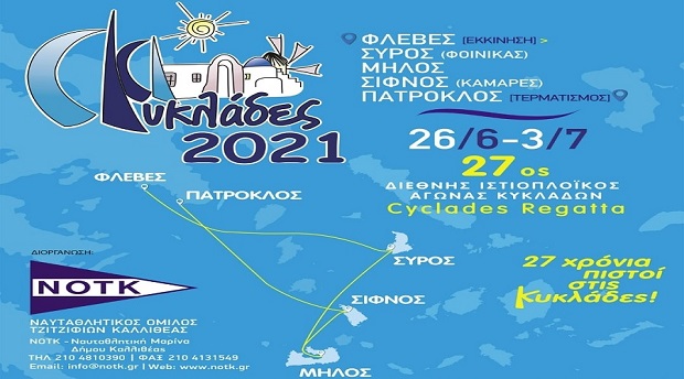 αύριο , Τετάρτη 30 Ιουνίου 2021 και ώρα 21:00, θα πραγματοποιηθεί η απονομή επάθλων στους νικητές των Ιστιοπλοϊκών Αγώνες του Διεθνούς Ιστιοπλοϊκού Ράλλυ Αιγαίου “CYCLADES REGATTA 2021”, στον Ναυτικό Όμιλο Μήλου.
