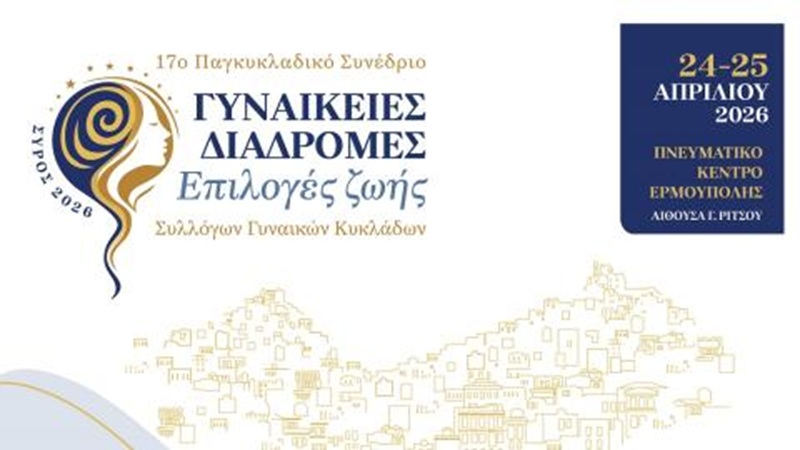 Η Ερμούπολη Σύρου ετοιμάζεται να υποδεχθεί το 17ο Παγκυκλαδικό Συνέδριο Συλλόγων Γυναικών Κυκλάδων, το οποίο θα πραγματοποιηθεί την Παρασκευή 24 και το Σάββατο 25 Απριλίου 2026, στο Πνευματικό Κέντρο Δήμου Σύρου – Ερμούπολης, στην Αίθουσα «Γ.Ρίτσος».