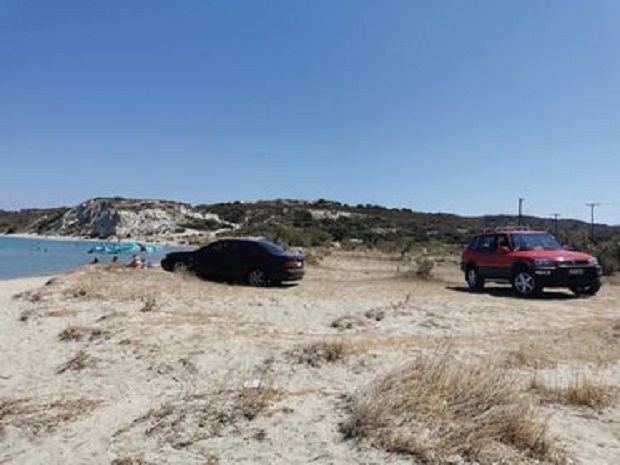 Κυριακή μεσημέρι  29 Αυγούστου στην Αχιβαδόλιμνη ,τα αυτοκίνητα παρκαρισμένα πάνω στην παραλία … παρέα με τους λουόμενους !