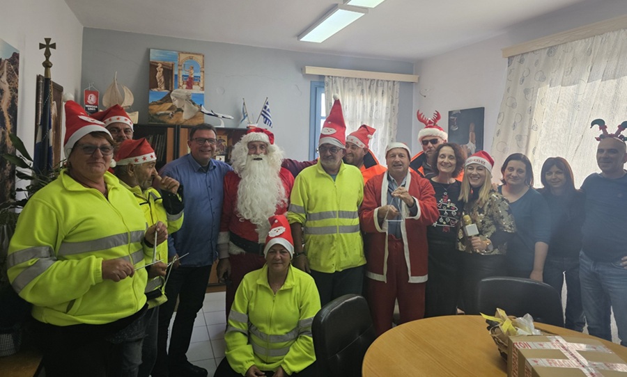Τα κάλαντα είπαν εργαζόμενοι του Δήμου Μήλου , στον Δήμαρχο Μανώλη Μικέλη.