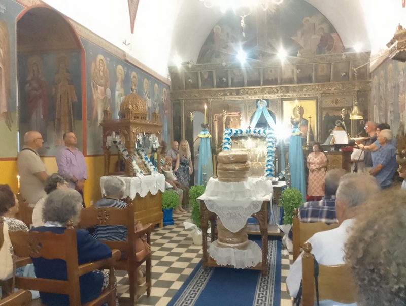 Μετά τον εσπερινό επισκέπτες και ντόπιοι και με μεγάλη συμμετοχή της νεολαίας χόρεψαν μέχρι το πρωί στο νησιώτικο γλέντι ,με την ορχήστρα του Ανδριώτη Θοδωρή Μουστάκα .