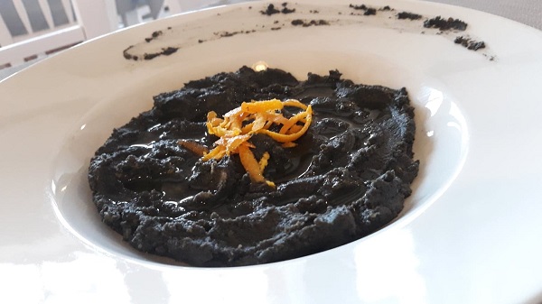 Ο σεφ Βασίλης Παπικινός προτείνει φάβα με μελάνι χταποδιού.